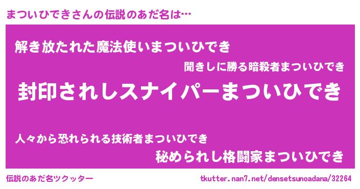 | 男性向けラノベタイトル風あだ名 | 『マツイヒデキアートオンライン』 |