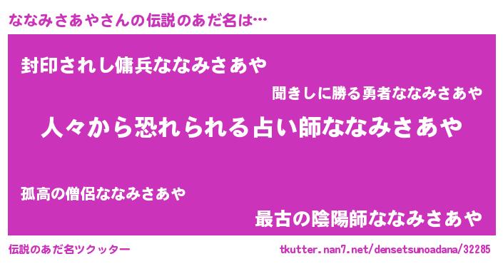 | ヒーロー風カッコイイあだ名 | 『仮面ナナダー』『スーパーナナミサアヤ』 |