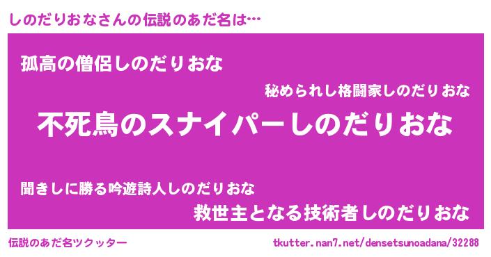 | 胡散臭い通販商品みたいなあだ名 | 『モテモテ間違いなし霊験あらたかなお札…その名も「しのだりおな」』 |
