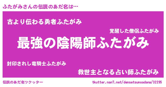 | ヒーロー風カッコイイあだ名 | 『ウルトラふたがみマン』『ネオフタガミ』 |