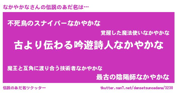 | ヒーロー風カッコイイあだ名 | 『ネオナカヤカナ』『スーパーナカヤカナ』 |