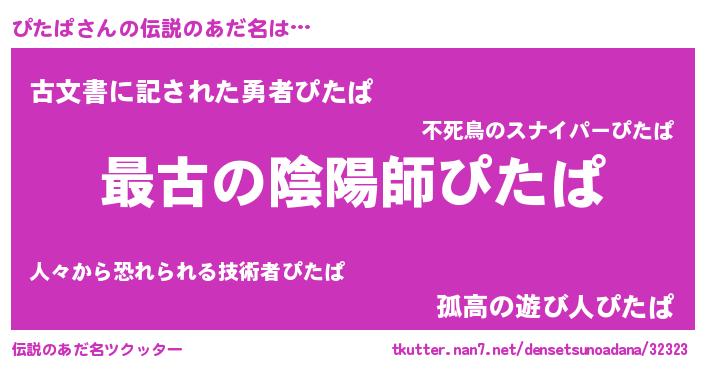 | ヒーロー風カッコイイあだ名 | 『ウルトラぴたぱマン』『仮面ピタダー』 |