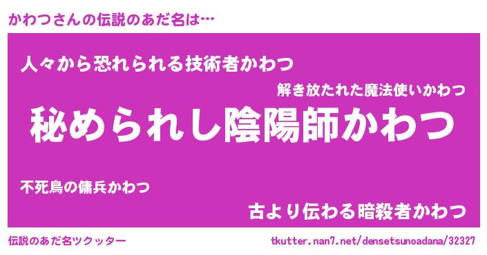 | ファンタジー風あだ名 | 『エターナルカワツー』『カークカワラー』 |