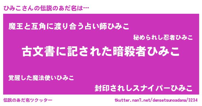 | ヒーロー風カッコイイあだ名 | 『ネオヒミコ』『仮面ヒミダー』 |