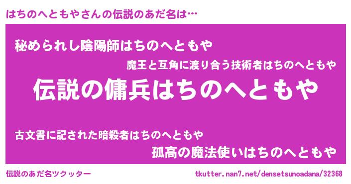 | ヒーロー風カッコイイあだ名 | 『スーパーハチノヘトモヤ』 |