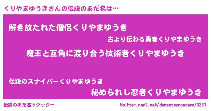| 男性向けラノベタイトル風あだ名 | 『この素晴らしい世界にくりやまゆうきを!』 |