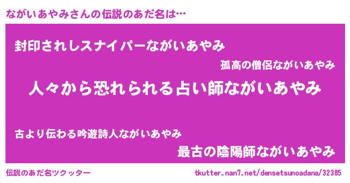 | 意味不明あだ名 | 『眠気覚ましガムながいあやみ味』 |