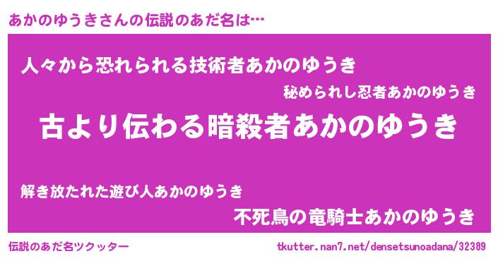 | 意味不明あだ名 | 『永久保存あかのゆうき』 |