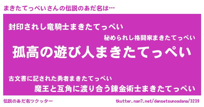 | 男性向けラノベタイトル風あだ名 | 『ダンジョンにまきたてっぺいを求めるのは間違っているだろうか』 |