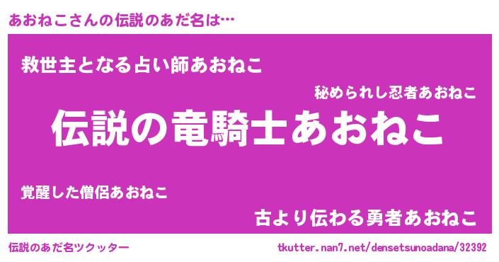 | ヒーロー風カッコイイあだ名 | 『スーパーアオネコ』『ネオアオネコ』 |
