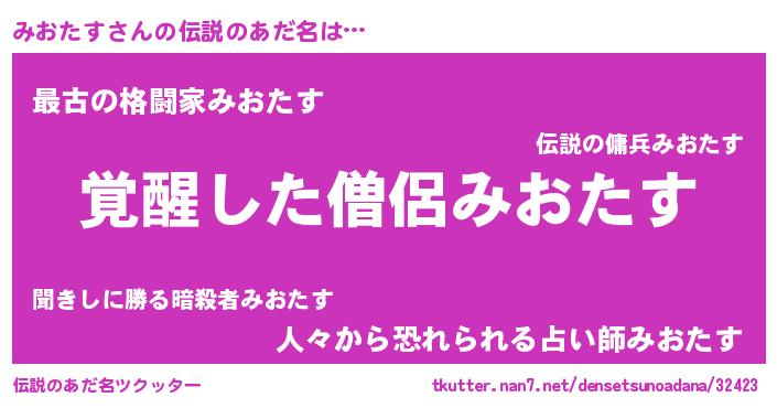 | 意味不明あだ名 | 『とにかく怪しいみおたす』 |