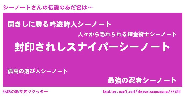 | 男性向けラノベタイトル風あだ名 | 『シーノートアートオンライン』 |