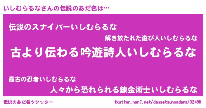 | 女子向けラノベタイトル風あだ名 | 『闇のいしむらるな』 |