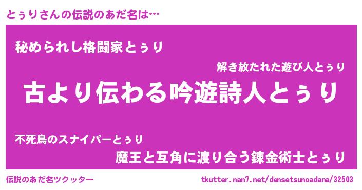 | ヒーロー風カッコイイあだ名 | 『ネオトゥリ』『ウルトラとぅりマン』 |