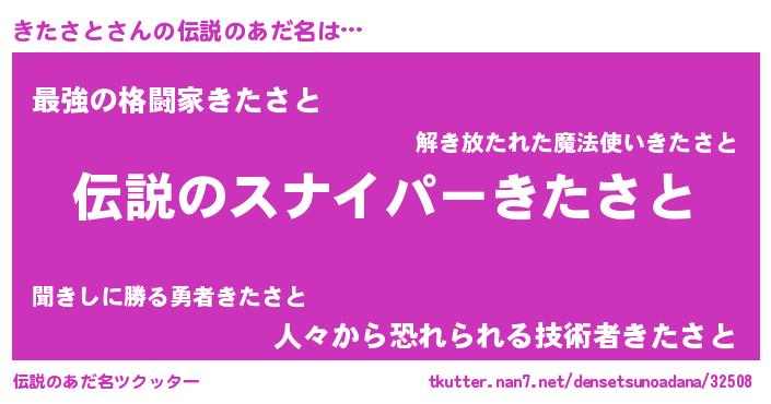 | ヒーロー風カッコイイあだ名 | 『スーパーキタサト』『仮面キタダー』 |