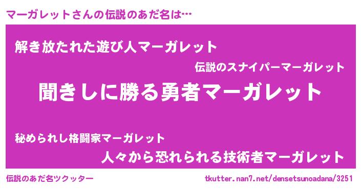 | 意味不明あだ名 | 『永久保存マーガレット』 |