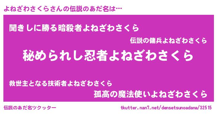 | ファンタジー風あだ名 | 『エターナルヨネザワサクラー』 |