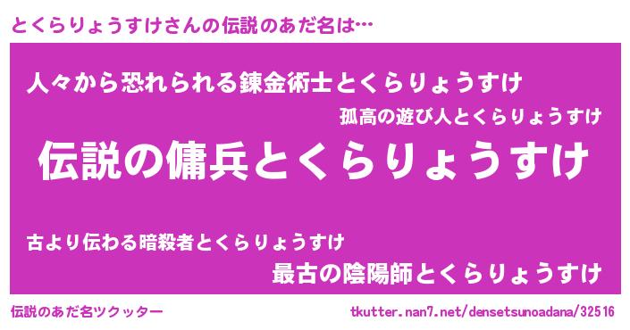 | 意味不明あだ名 | 『ペロリンとくらりょうすけ』 |