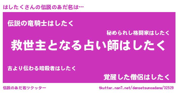 | ヒーロー風カッコイイあだ名 | 『慈愛の使者はしたく』『幻影騎士ハシ』 |