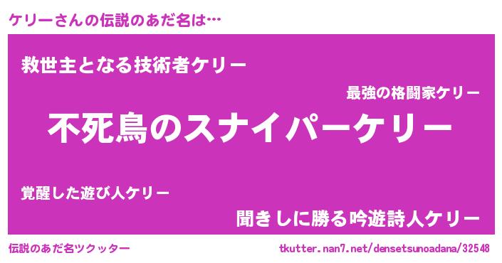 | 男性向けラノベタイトル風あだ名 | 『転生したらケリーだった件』 |