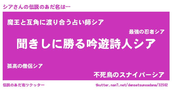 | ヘコむあだ名 | 『シア(小並感)』『シアもー』 |