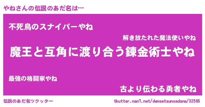 | ヒーロー風カッコイイあだ名 | 『仮面ヤネダー』『慈愛の使者やね』 |