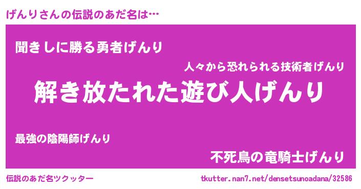 | ヘコむあだ名 | 『げんぷりん』『げんり(笑)』 |