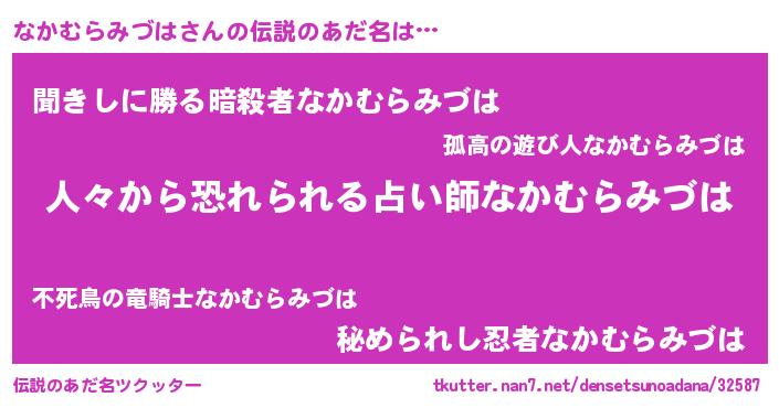 | 意味不明あだ名 | 『自称なかむらみづは』 |