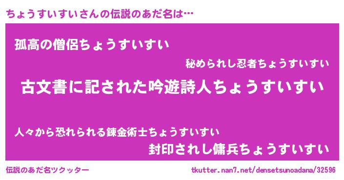 | 意味不明あだ名 | 『永久保存ちょうすいすい』 |