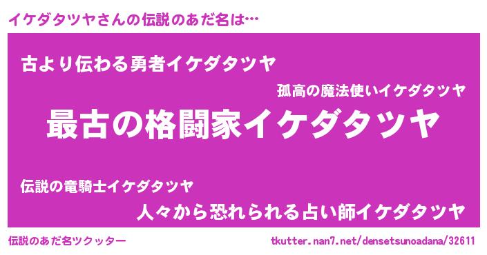 | ヒーロー風カッコイイあだ名 | 『最強戦士イケダタツヤ』『暗黒騎士イケ』 |