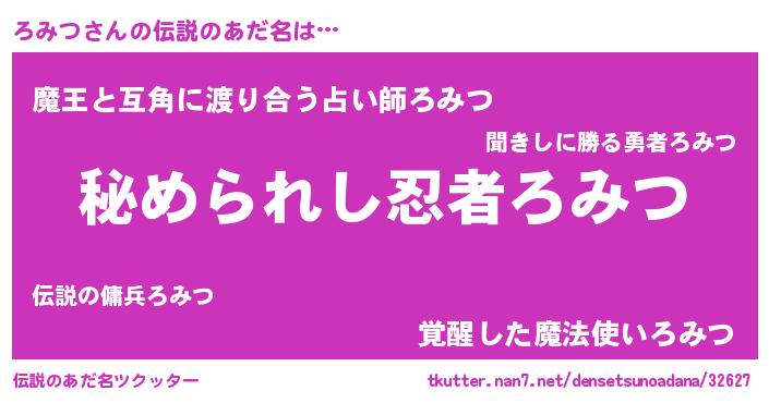 | 男性向けラノベタイトル風あだ名 | 『緋弾のロミツ』『はたらくろみつさま!』 |