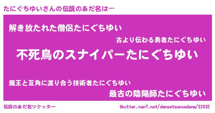 | 胡散臭い通販商品みたいなあだ名 | 『モテモテ間違いなし霊験あらたかなお札…その名も「たにぐちゆい」』 |