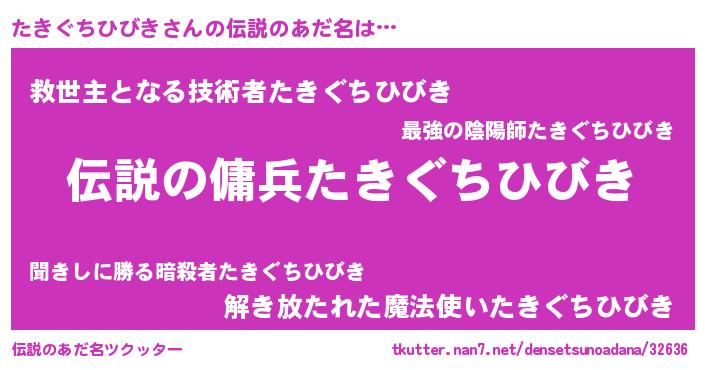 | 男性向けラノベタイトル風あだ名 | 『タキグチヒビキスレイヤー』 |