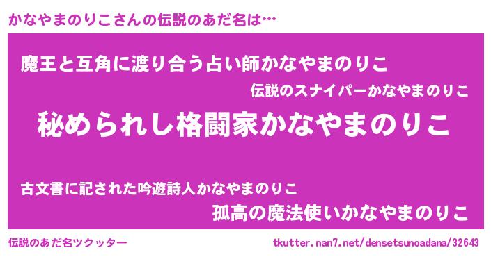 | 意味不明あだ名 | 『かなやまのりこフォーエバー』 |