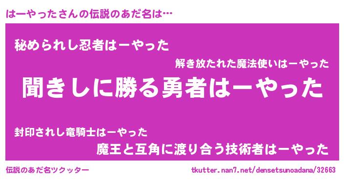 | ヒーロー風カッコイイあだ名 | 『仮面ハーダー』『ネオハーヤッタ』 |