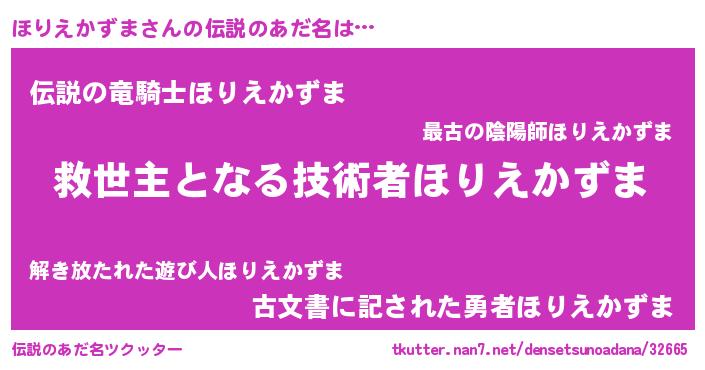 | 肩書あだ名 | 『ほりえかずま教授』『ほりえかずま大佐』 |