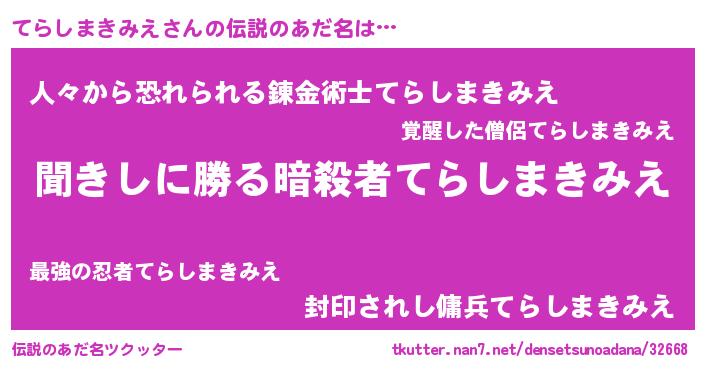 | 意味不明あだ名 | 『永久保存てらしまきみえ』 |