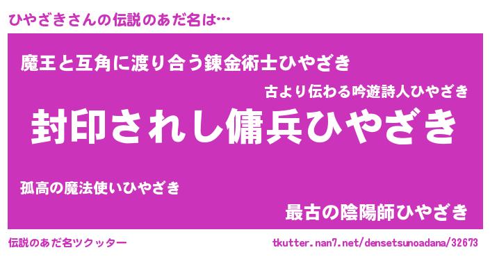 | 意味不明あだ名 | 『住所不定無職ひやざき(40歳)』 |