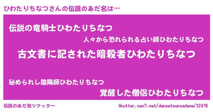 | ヘコむあだ名 | 『ひわたりちなつ(苦笑)』『ひわにー』 |