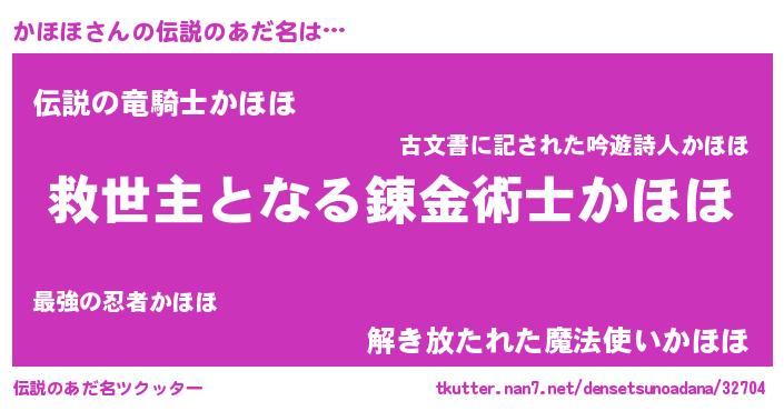 | ヒーロー風カッコイイあだ名 | 『究極戦士カホホ』『正義の使者かほほ』 |