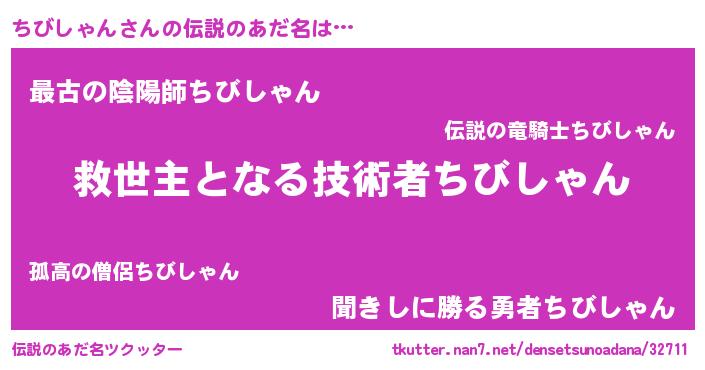 | 男性向けラノベタイトル風あだ名 | 『この素晴らしい世界にちびしゃんを!』 |