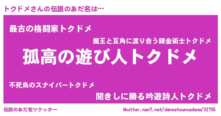 | ヒーロー風カッコイイあだ名 | 『暗黒騎士トク』『ウルトラトクドメマン』 |