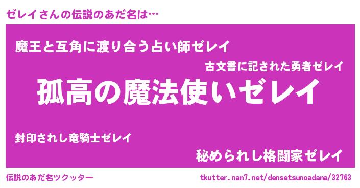 | ヒーロー風カッコイイあだ名 | 『黄金騎士ゼレ』『友情の使者ゼレイ』 |
