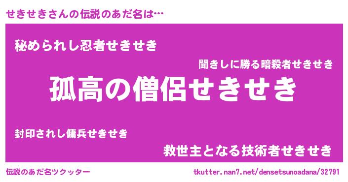 | 欧米人風あだ名 | 『アンジェラ・せきせき』 |