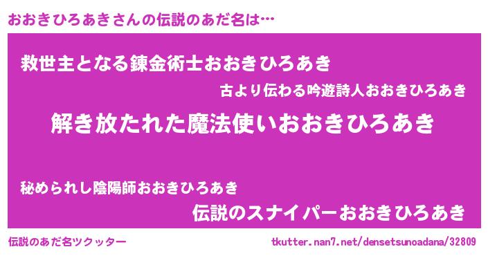 | 女子向けラノベタイトル風あだ名 | 『闇のおおきひろあき』 |