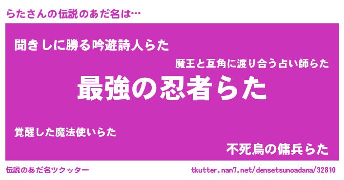 | ヒーロー風カッコイイあだ名 | 『ウルトラらたマン』『仮面ラタダー』 |