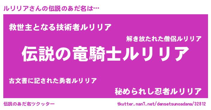 | ヒーロー風カッコイイあだ名 | 『スーパールリリア』『銀牙騎士ルリ』 |