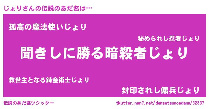 | 胡散臭い通販商品みたいなあだ名 | 『絶対に幸福をもたらす健康食品…その名も「じょり」』 |