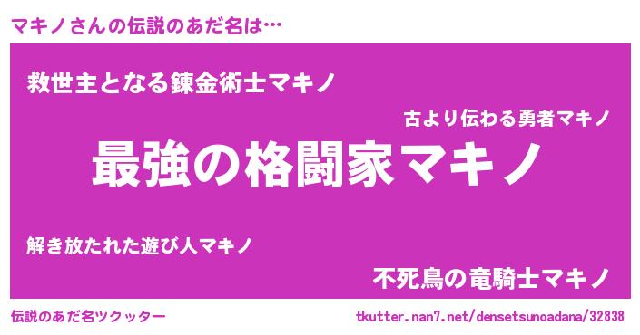 | ヒーロー風カッコイイあだ名 | 『仮面マキダー』『ウルトラマキノマン』 |