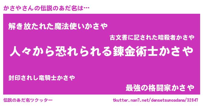 | ヒーロー風カッコイイあだ名 | 『正義の使者かさや』『幻影騎士カサ』 |
